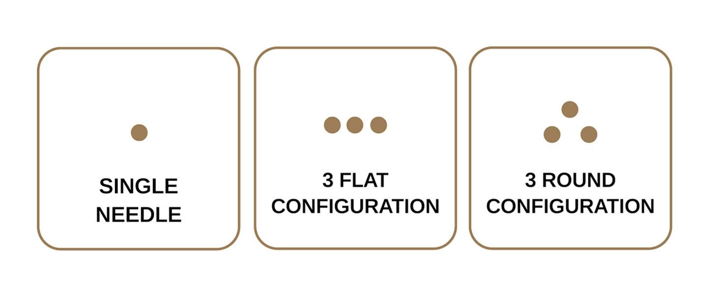 Los diámetros de aguja que son mayores a 0.25/0.30/0.35 mm están destinados para su uso en todo tipo de piel y son un tamaño universal diseñado para su uso en todas las técnicas de PMU. Ayudan a reducir el trauma en la piel, por lo que son mejores para artistas más nuevos.